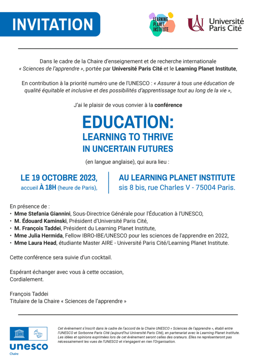 UNESCO Chair Conference: “Education: Learning to thrive in uncertain futures”