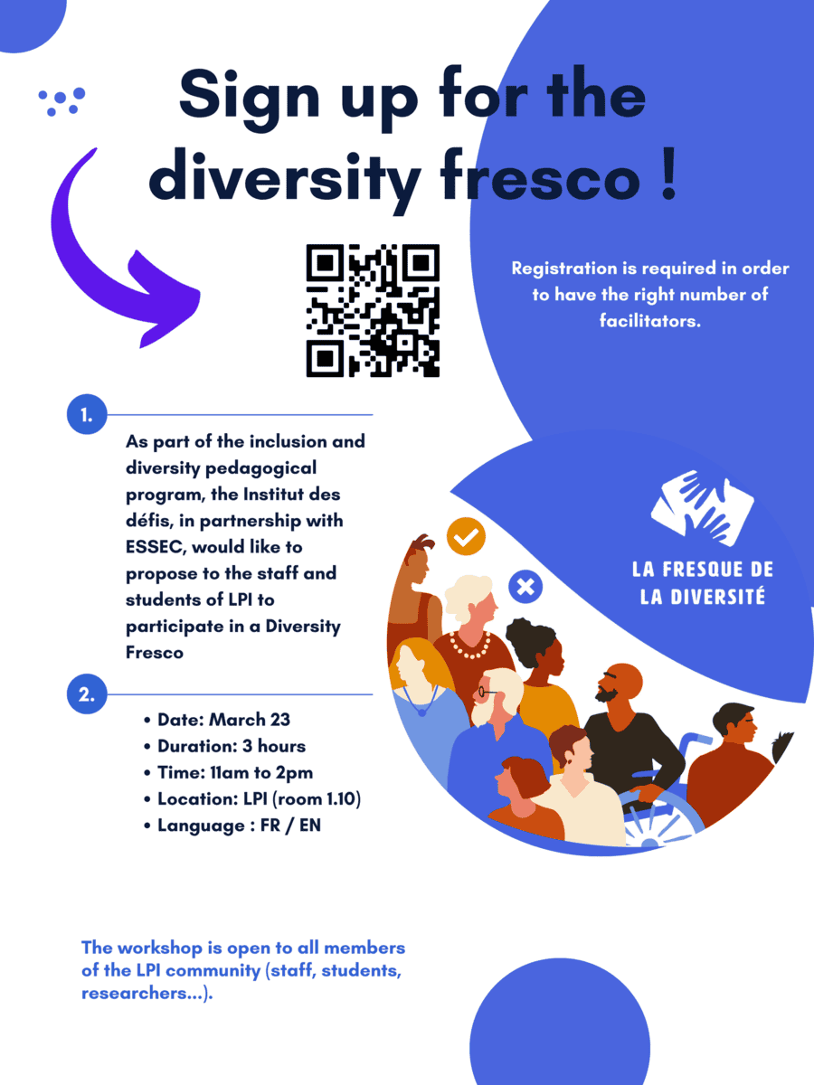 The Diversity Fresco is a tool designed to help build awareness about discrimination and to challenge preconceptions surrounding issues of discrimination and inclusion within organizations (schools, universities, companies, associations, etc.).