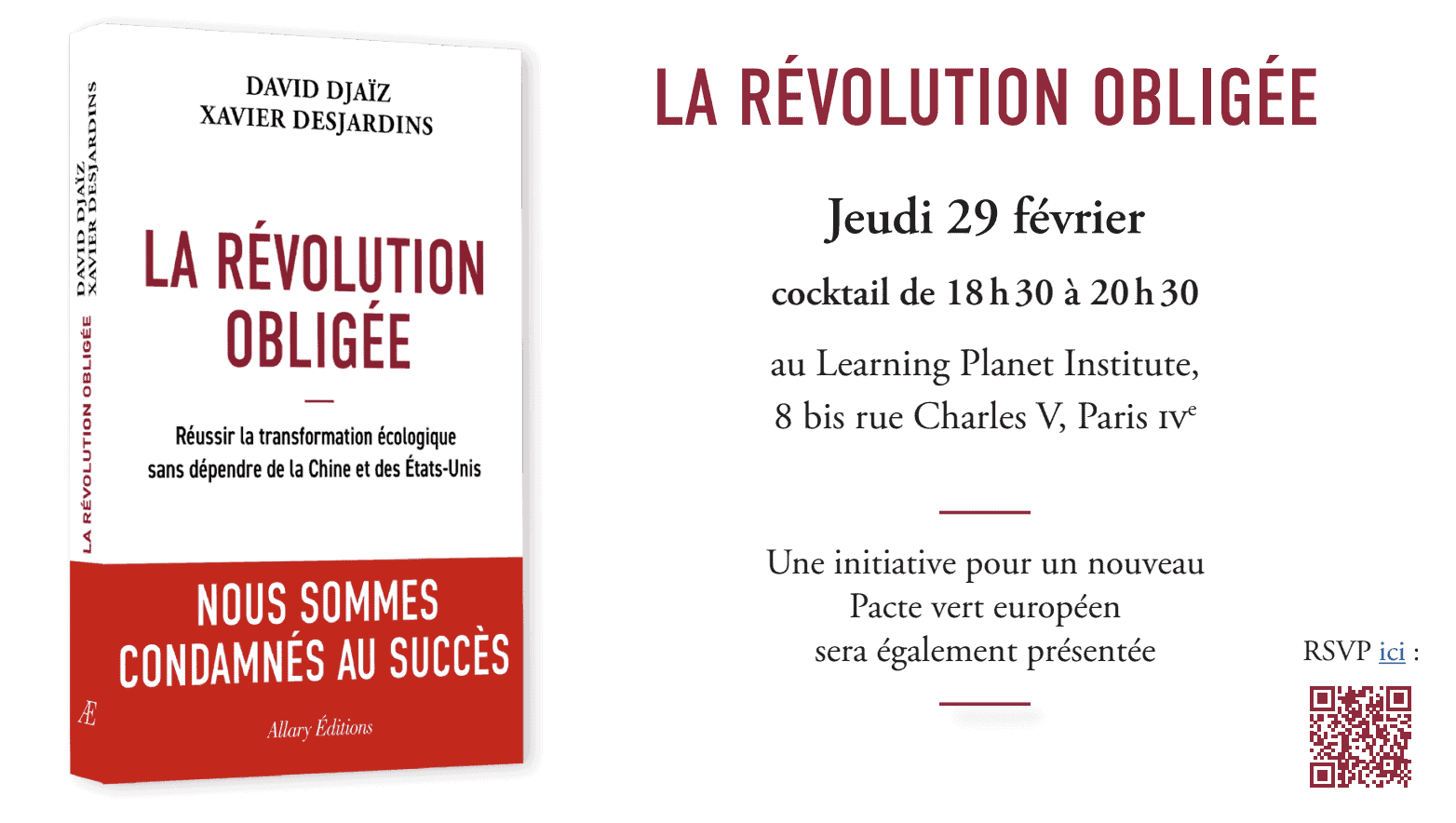 Launch of the book “La Révolution obligée” with David Djaïz and Xavier Desjardins