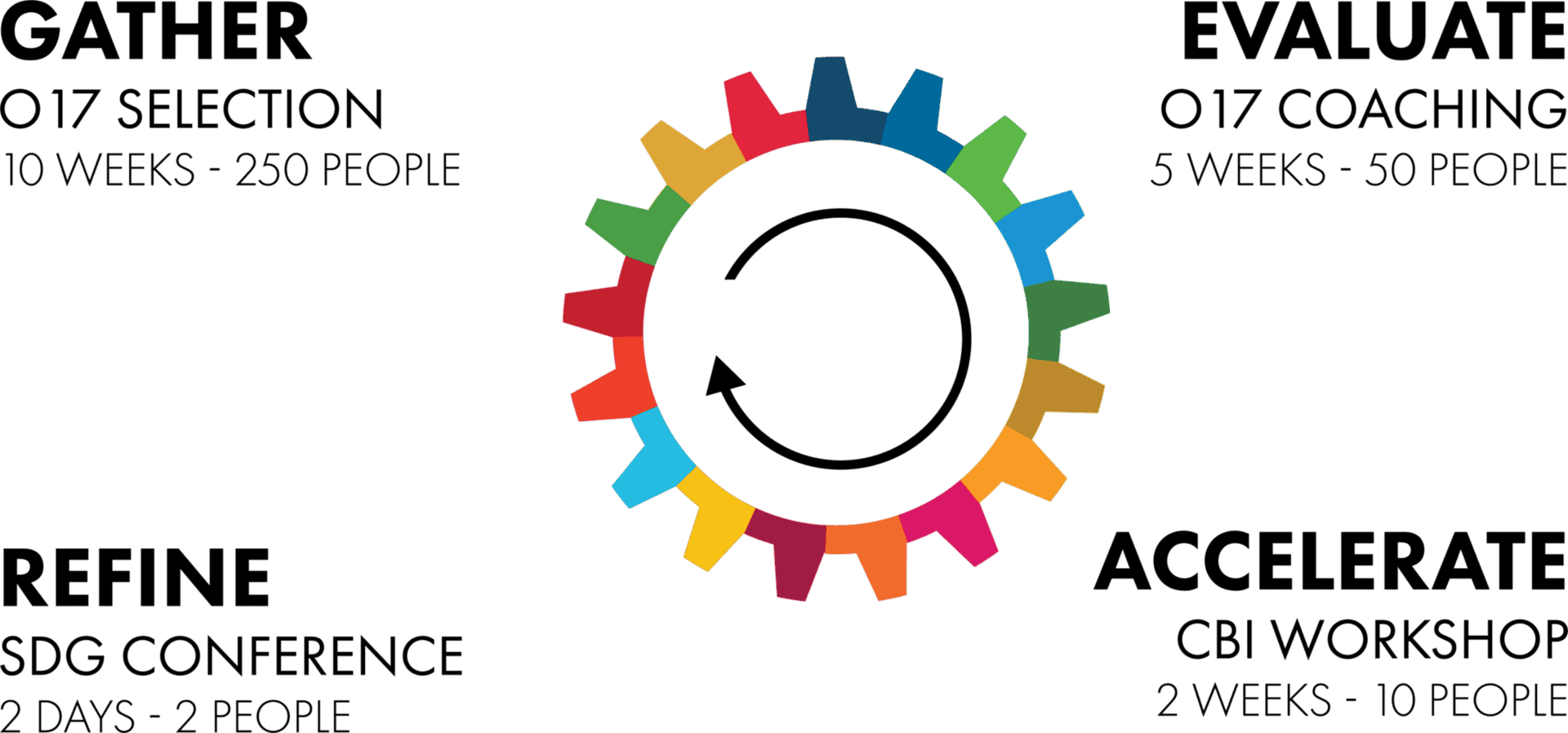 In the first phase (GATHER), a call for projects is launched via the Open 17 Challenge. The challenge is to develop a project that addresses the SDGs using crowdsourcing: information gathered by a large number of citizens. A group of participants is then selected by a committee on the basis of objective criteria: novelty, relevance and feasibility.