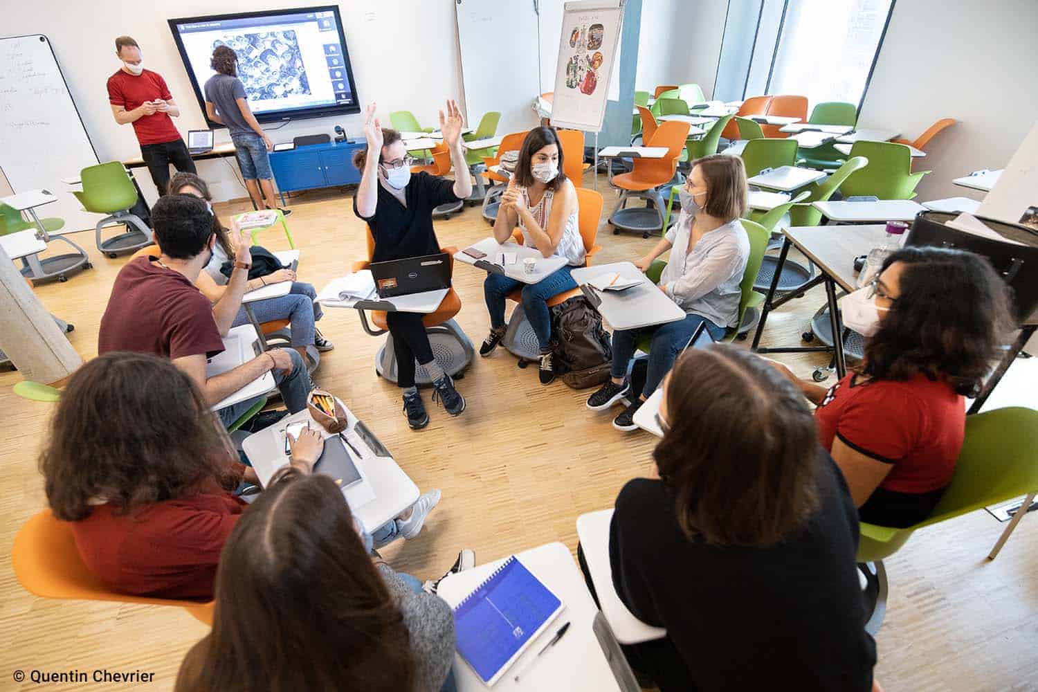 As part of this European project, the CRI (Centre de Recherche et d'Interdisciplinarité), now the Learning Planet Institute, has organized some 100 events. These included debates, seminars, biodesign workshops, a MOOC on synthetic biology, and bioart masterclasses. In secondary schools, the workshop introduced students to the world of citizen science, digital fabrication and genetics. The project included a science bus that toured Europe for three months, stopping at 17 locations and encouraging do-it-yourself science activities, such as making your own yoghurt, sun cream or pH meter, or testing air quality.
