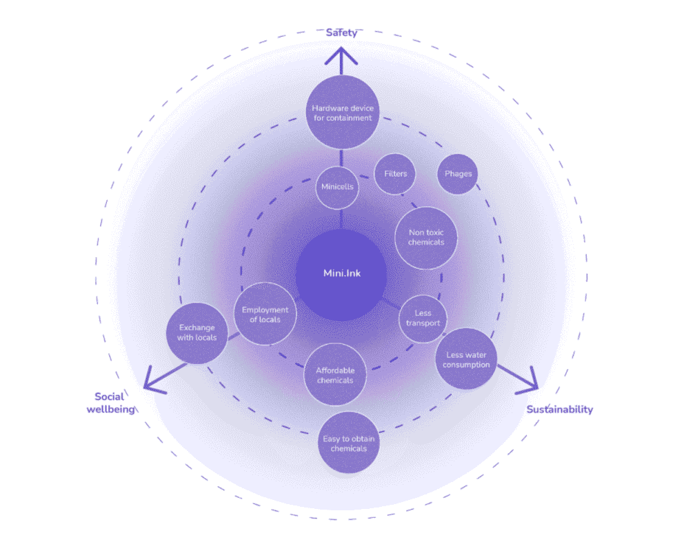 [Juliette] During the brainstorming process, we had a wide range of ideas, from biosensors to biofilms. Then someone told us about these organisms. We started reading scientific publications on these mini-cells. They are used in delivery systems, for example, to deliver drugs to certain parts of the body. Mini-cells are used a lot in this field because they have the particularity of being very small and able to get into places inaccessible to bacteria. And most of the articles on mini-cells dealt with this subject. As we delved deeper into the subject, we realized that we could also use these cells for other purposes.