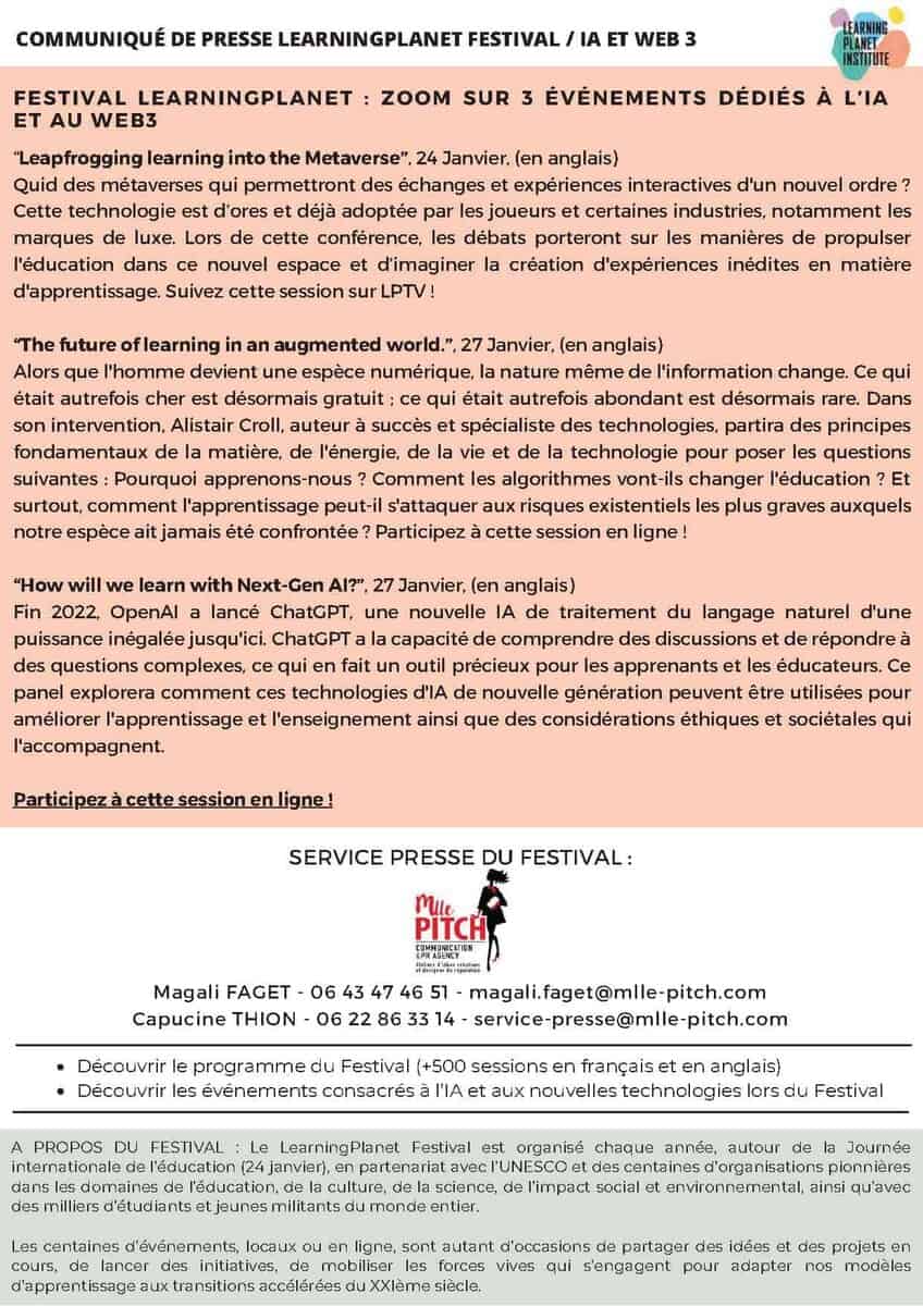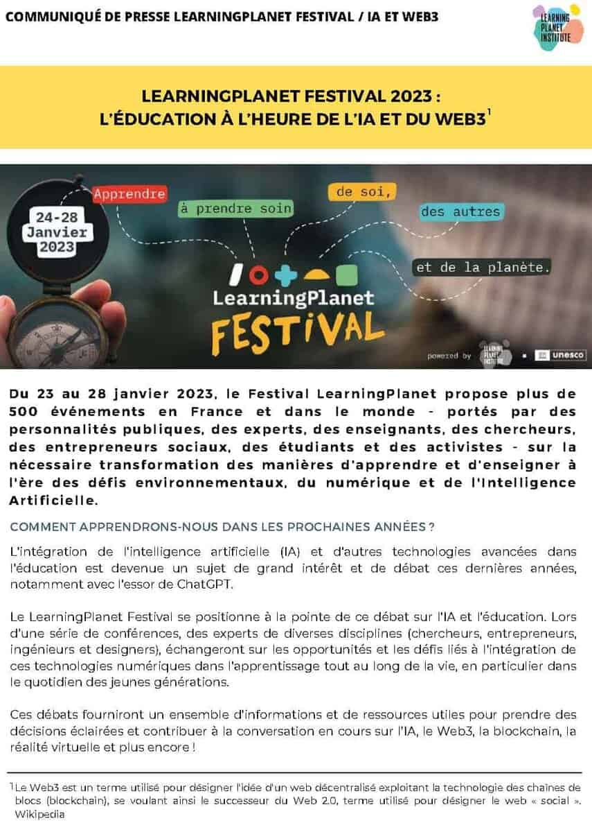 Press release - LearningPlanet Festival 2023: education in the age of AI and Web3