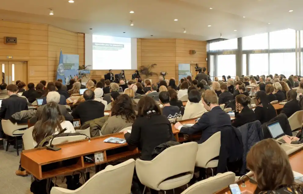 In the presence of : Stefania Giannini (UNESCO), Laura Head (Université Paris Cité-Learning Planet Institute), Julia Hermida (Universidad Nacional de Hurlingham, CONICET), Edouard Kaminski (Université Paris Cité) and François Taddei (Learning Planet Institute).