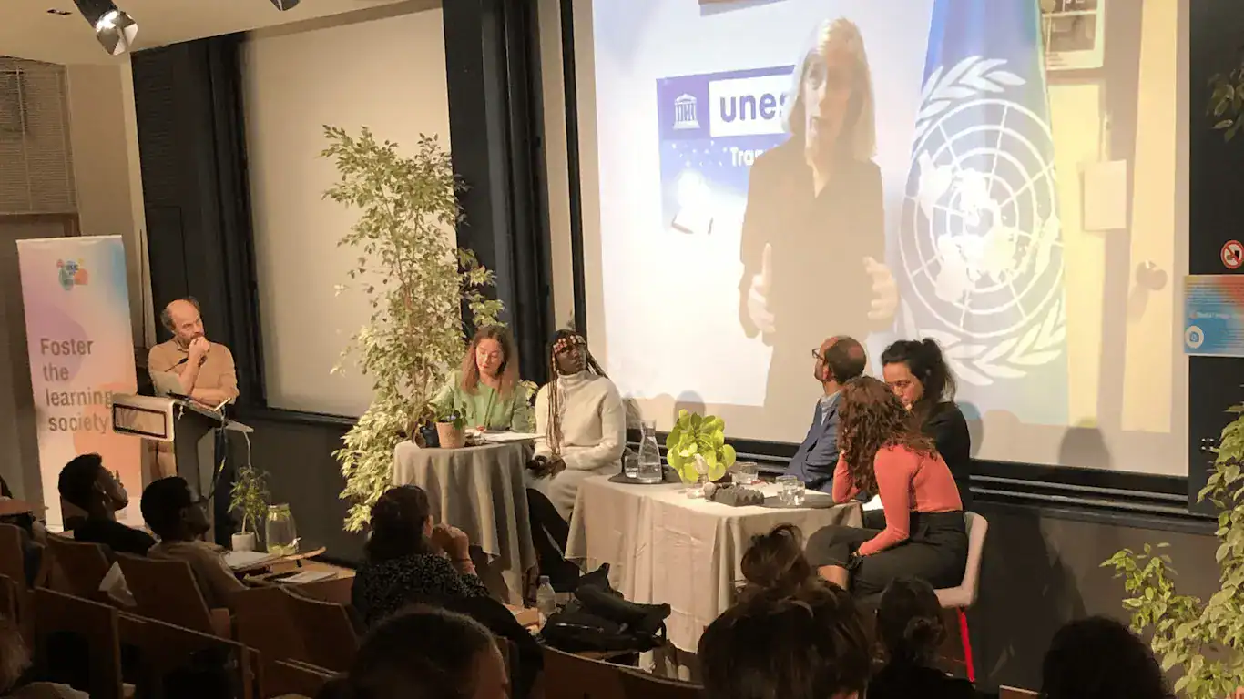 In the presence of : Hilary Cremin (University of Cambridge), Christopher Castle (UNESCO), Ilgın Paslı-Brombach (planIMPACT), Rina Malagayo Alluri (University of Innsbruck/UNESCO), Pavel Luksha (Global Education Futures) and Candice Mama (Author)