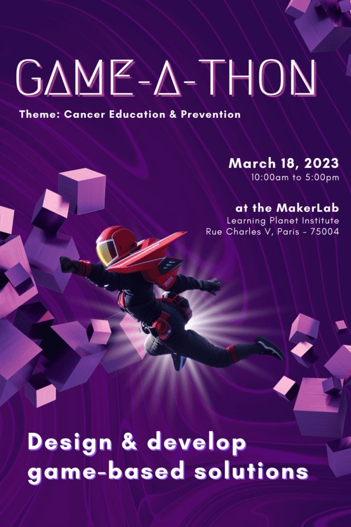 J’organise un jeu-othon pour promouvoir la sensibilisation au cancer et rassembler les personnes intéressées pour discuter et développer ensemble différentes idées de jeux qui peuvent être utilisées pour promouvoir l’information sur les différents cancers.