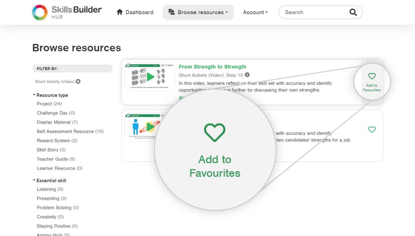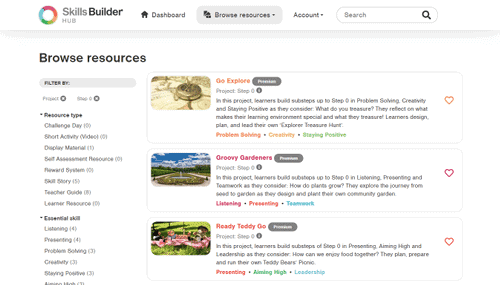 Toutes les ressources sont liées à des compétences et des étapes spécifiques. Vous pouvez filtrer par compétence ou étape, ainsi que par durée et type d’activité.